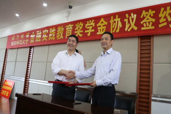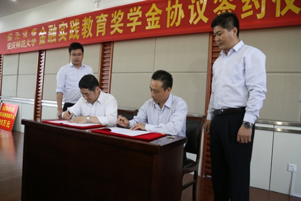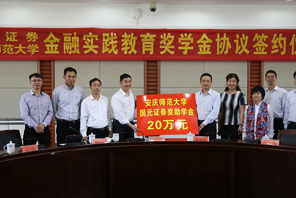 与国元证券股份有限公司“金融实践教育奖学金”协议,张群代表学校接受了国元证券公司捐赠的20万元奖学金。