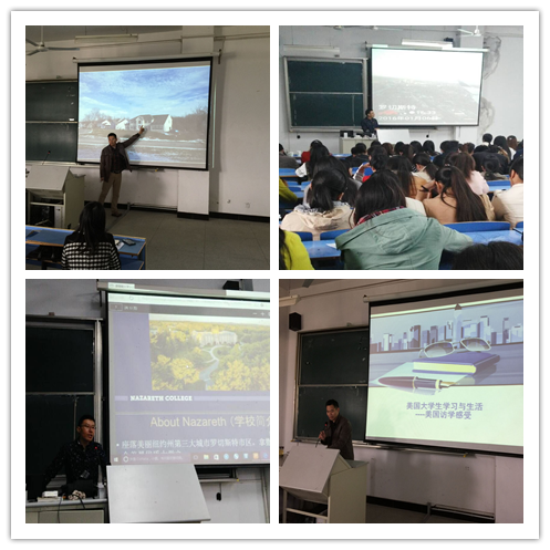在通过大量图片介绍所访问的美国拿撒勒大学和索尔兹伯里大学的基本情况后,两位老师着重围绕访学过程中的所见所感,从美国学生课堂学习和业余生活等多方面为学生讲述了美国大学教育的现状。美国高校严格的教学管理让人印象深刻,课前布置作业,引导学生自觉阅读文献,整理拟上课内容;课中以讨论式教学为主,老师随堂记录每位同学的表现,并成为课程成绩考核的重要依据;课后作业具有挑战性,并配以必要的三次考试,该考试成绩同样成为课程成绩考核的依据,这些管理措施督促并养成了学生自主学习、持续学习的能力。最后,介绍了小说网