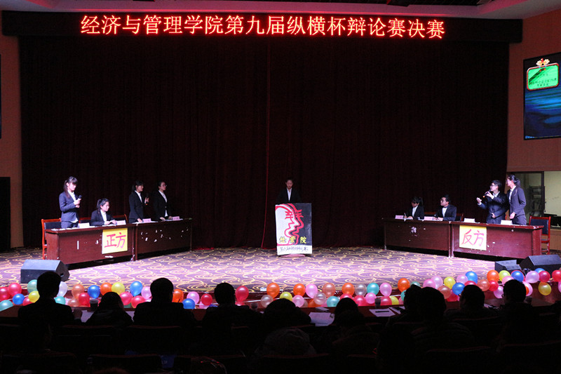 第九届“纵横杯”辩论赛决赛在校图书馆东厅举行。教师代表张支南、马志华、徐菲,团总支副书记张军出席本次大赛。大赛还邀请了学生优秀辩手胡琨、江颖、常磊担任评委团。
