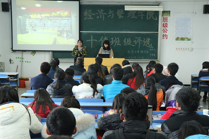‘2+2’中美合作的首届,我们很珍惜这种带头模范的机会。”13级国际经济与贸易合作班的解说员声情并茂的说着。在他们班,创业可谓是特色,学习成绩也没有落后。13级财务管理三班利用新媒体普及专业知识,班级建设特色鲜明,成果显著。最终,13财管3班、14金融2班、14物流2班、13市营1班获得小说网