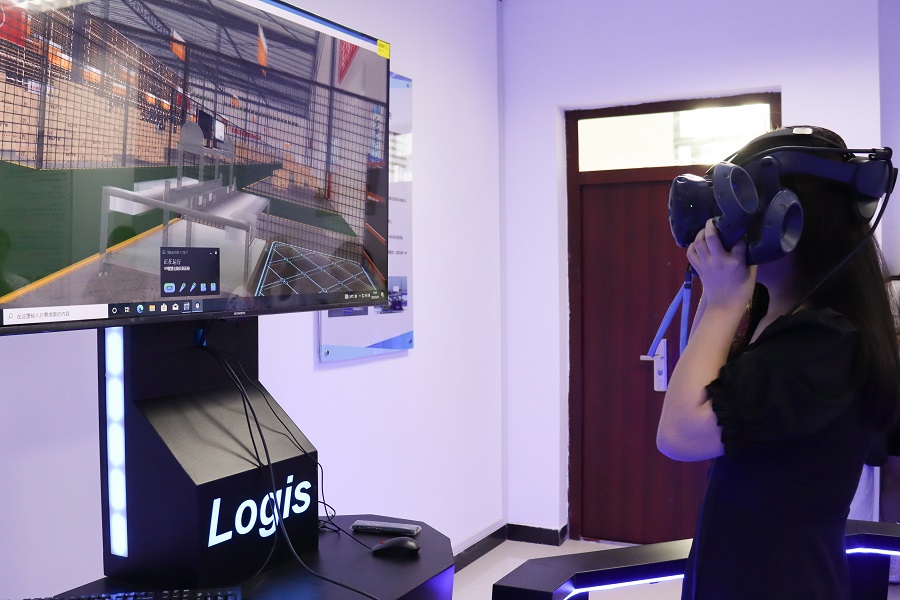 教师王天祥讲解了VR智慧仓储实训系统的具体操作流程。他表示,学生们的仓库设计作业可以通过系统直接还原真实面貌,方便教师了解学生对知识的实际掌握情况,更好的开展教学工作。拣选货物、仓库灭火、货架摆放……VR智慧仓储实训系统展现的3D效果,引得学生们直呼“惊奇”,跃跃欲试。