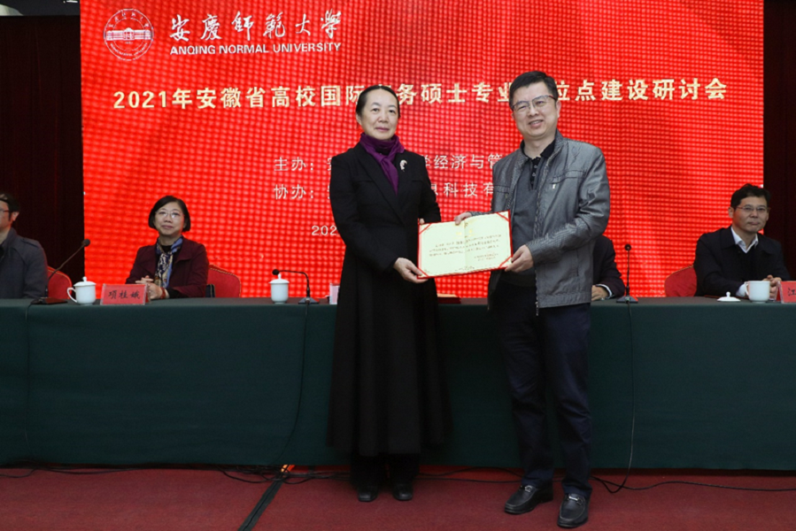 国际商务硕士专业学位点建设与发展,深化兄弟高校、行业企业之间的交流与合作,为安徽省高校国际商务硕士专业学位点建设建言献策。随后,她还为我校新增国际商务硕士专业学位点校外硕士研究生指导教师颁发了聘书。