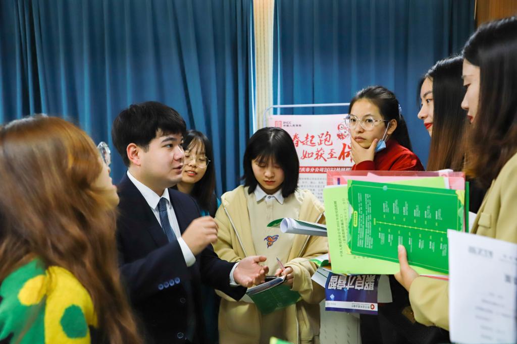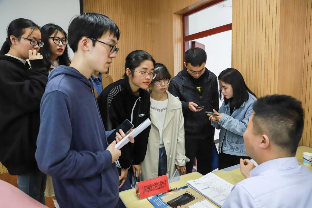 2022届毕业生实习就业双选会在M楼举行。安徽融创房地产开发有限公司、上海高顿教育科技有限公司以及中国人寿安庆分公司等19家用人单位为2022届毕业生提供集中实习工作岗位,提供岗位覆盖国际经济与贸易、市场营销、物流管理、金融工程和电子商务6个专业,此次实习就业双选会共计530余名应届毕业生参加。
