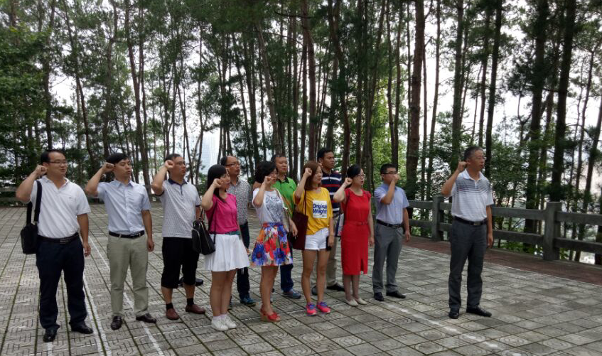 在大别山烈士陵园纪念碑前,在李亦亮领誓下,参加学习的全体人员举起右手,紧握拳头,面对党旗重温了入党誓词。