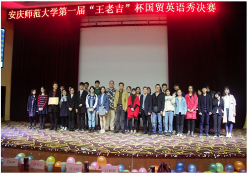 第一届“王老吉”杯国贸英语秀决赛暨安徽省第二届国贸技能大赛选拔赛于4月5日晚在龙山校区图书馆东报告厅顺利举行。此次比赛一共有六支队伍,最终“Emperor”队伍荣获冠军,“Cap it all”团队和“Break”团队共同获得亚军,季军分别是“Moonlight”、“Ambition”和“The star is at”队伍。