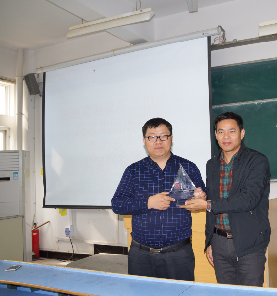 向李忠玉先生赠送了“安庆创业创新讲堂”纪念品。