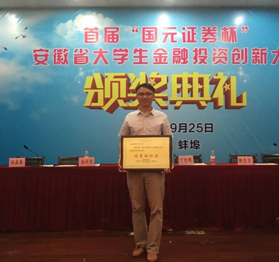 首届“国元证券杯”安徽省大学生金融投资创新大赛由安徽省教育厅主办、安徽财经大学承办、国元证券股份有限公司和上海大智慧股份有限公司协办。本次比赛共设股票虚拟仿真交易组、金融投资策略设计组、公司上市可行性分析三个组别,全省共有66所高校、27556名同学报名参赛。