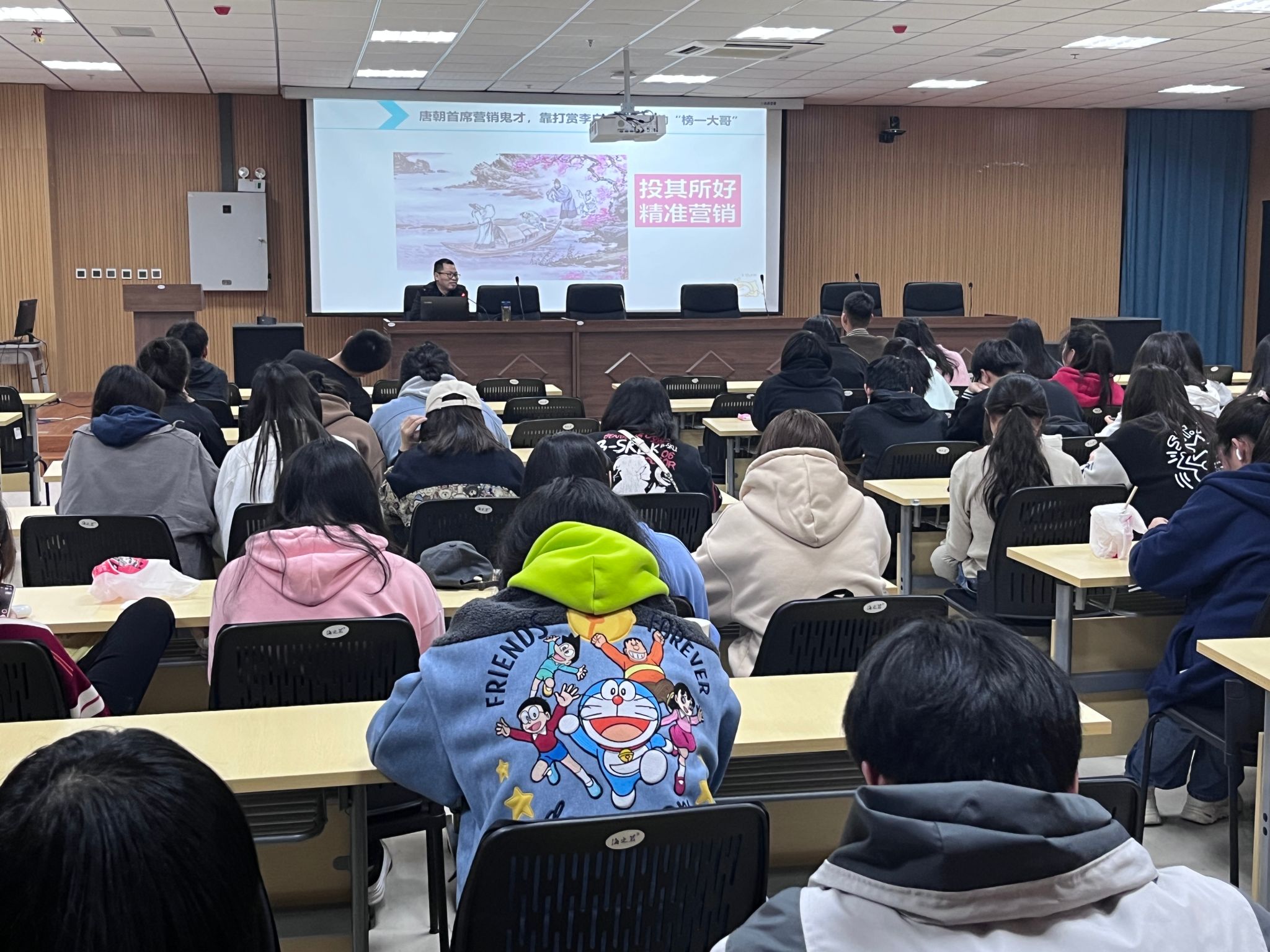 张国宝从自己对营销学的感悟出发,为同学们解答了营销学的误区并阐述了营销学的有关认知,“营销学并不是简单的发传单,卖保险,营销学是一门成就他人,成就自己的哲学”,张国宝教授以《赠汪伦》中李白和王伦的友谊为例子生动形象地向同学们讲解了营销学的学科特色,建议同学们深入了解营销学,感受营销学的魅力。
