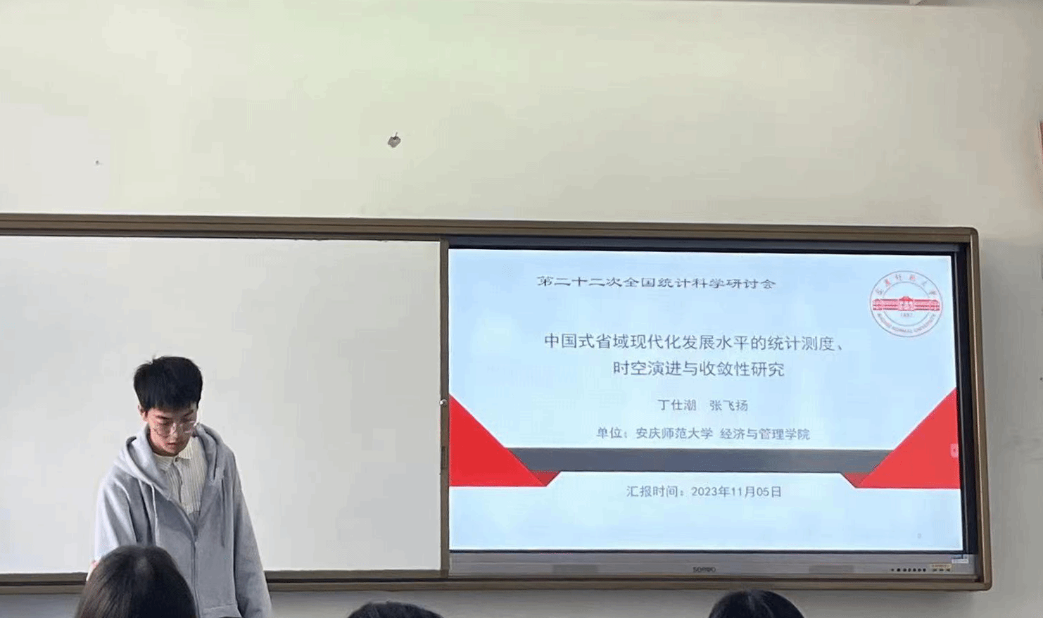 丁仕潮副教授与研究生张飞扬同学合作撰写的学术论文《中国式省域现代化发展水平的统计测度、时空演进与收敛性研究》被遴选为宣讲论文,张飞扬同学参加会议并代表研究团队作汇报交流。
