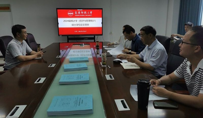 在M207会议室举行了2024届统计学硕士研究生学位论文答辩会议,2022级、2023级硕士研究生进行了旁听。遵循学科相近、导师回避原则,本次答辩委员会主席为安徽师范大学马骥教授,答辩委员会成员为杨国才教授、王全忠副教授、赵亚娟副教授、丁玉龙副教授。