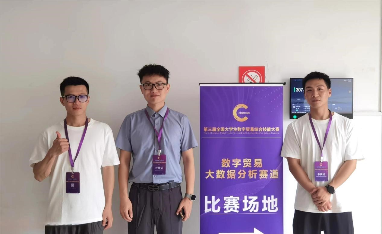 2023级国际商务专业裘志鑫、王澎、汪冰琪三位研究生组成的团队在本次数字贸易大数据分析赛道(华东赛区)区域赛中荣获一等奖,并成功入围今年9月将于浙江杭州举行的全国总决赛。