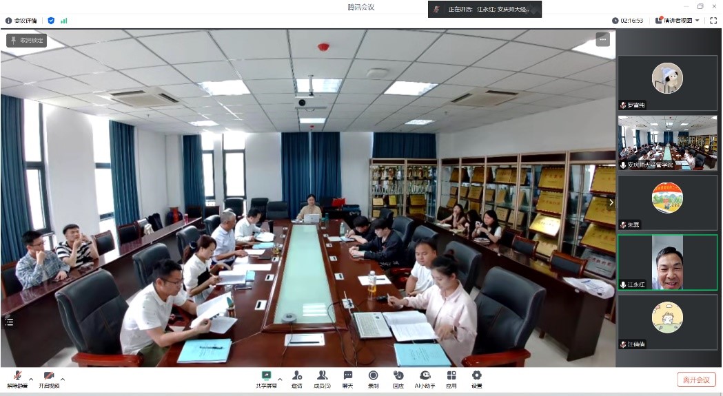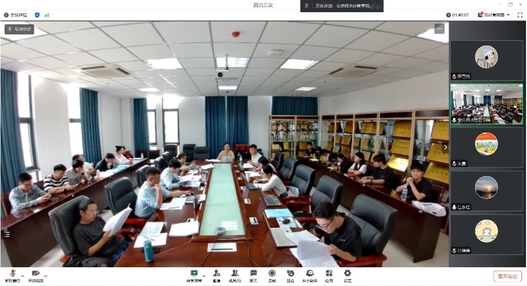 在M207会议室举行了2025届统计学硕士研究生学位论文答辩会议,2023级、2024级硕士研究生进行了旁听。本次答辩委员会主席为安徽大学江永红教授;遵循学科相近、导师回避原则,答辩委员会分两组,第一组成员为徐俊杰教授、梁培培副教授、李裕鸿副教授、曹张龙副教授,第二组成员为李亦亮教授、丁玉龙副教授、赵亚娟副教授、余卫博士。