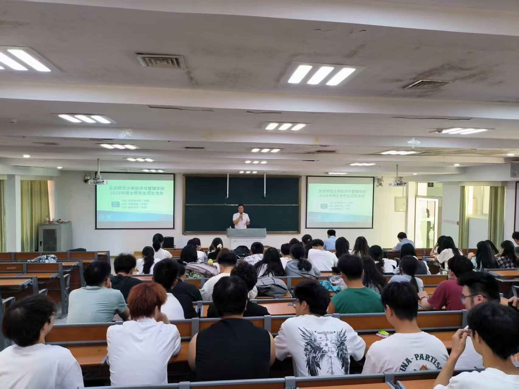 在宣讲会现场,徐俊杰院长和梁培培副院长主要介绍了学校和小说网 的学科专业、办学目标、科研成果、师资力量等情况。彭长生教授和丁玉龙副教授重点讲解小说网 硕士点培养目标、培养特色、培养优势、小说网 环境等内容,并解读各专业报考条件和要求,同时与现场同学们进行互动交流,现场气氛活跃。