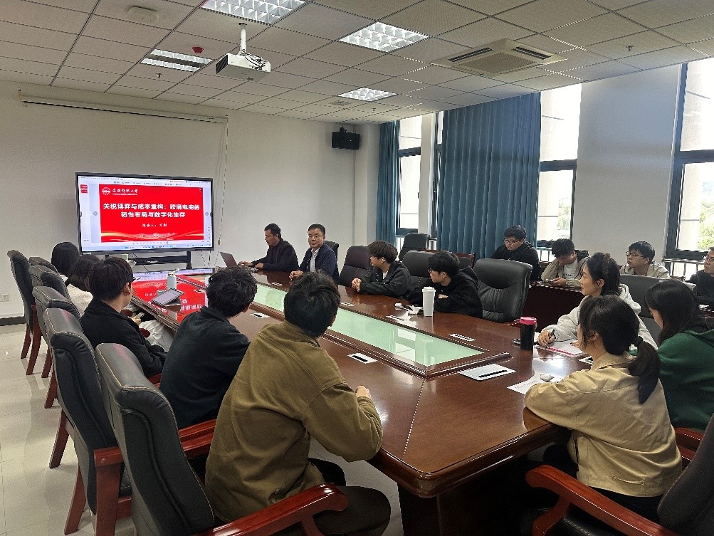 校外实践导师万彬应邀作题为“关税博弈与成本重构:跨境电商的韧性布局与数字化生存”的学术报告。报告会由副院长梁培培主持,2024级全体研究生参加。