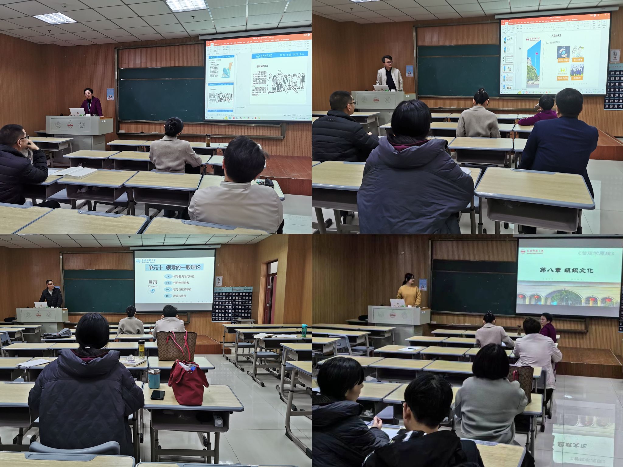 基于前期对课程教学大纲的科学、规范修订,课程组张琴、王天祥、吕有清、罗雪纯四位老师在磨课现场展示教案讲稿的同时,围绕《管理学》课程不同章节进行了现场模拟教学,展现了良好的教学素养。与会教师从课程思政元素的融入、教学环节的设计、教学思路的改进等维度进行了经验分享与交流,为新进老师快速适应课堂和站稳讲台提供了很好的平台。