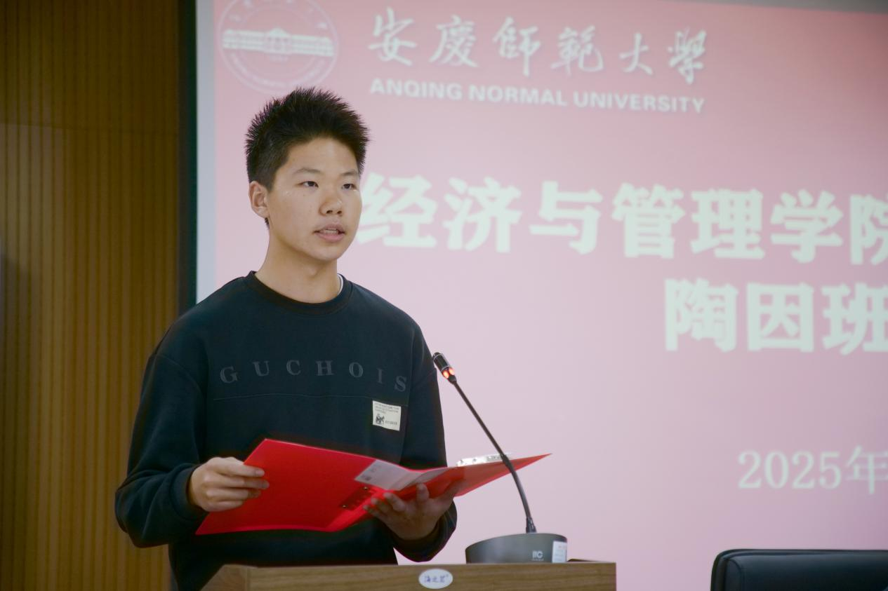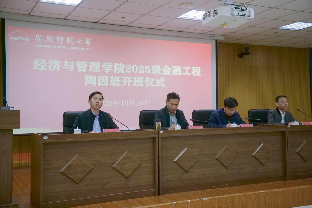 教务处处长潘锦云在发言中指出,陶因班以 “南陶北马” 著名经济学家陶因先生命名,是学校响应教育部顶层设计、在高等教育普及化背景下重点打造的第三届卓越班级。他同时向学子提出三点期望:一是以 “立大志、成大才” 为目标,主动向安庆籍经济领域杰出人才看齐;二是脚踏实地夯实专业基础,持续提升综合素养;三是珍惜学校提供的专属培养资源,以四年潜心耕耘筑牢长远职业发展根基。
