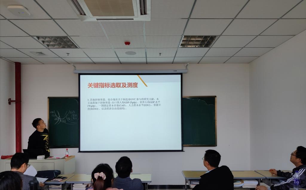 本次沙龙由2020级研究生崔世鹏、黄梦格进行了精选文献分享。两位同学就生产性服务业开放与制造业全球价值链参与、人口老龄化与经济高质量发展两个主题,对其精选文献的研究价值与写作范式进行解读。最后结合个人研究方向对其未来研究主题与参会老师进行了充分沟通。