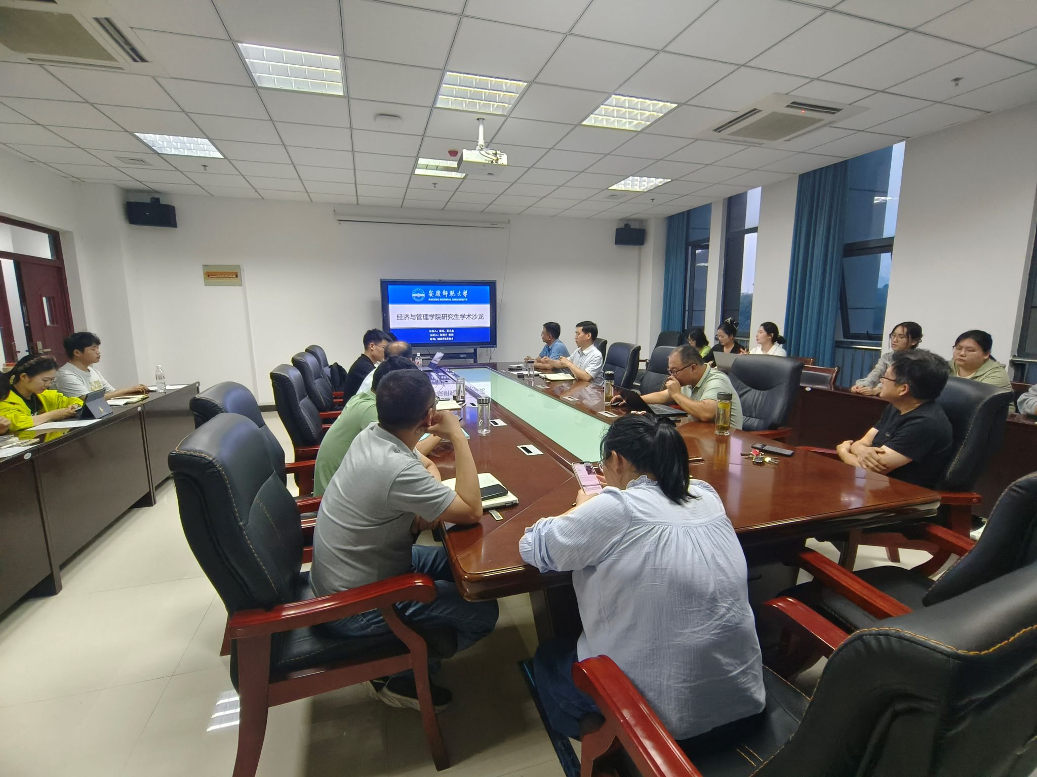 本次学术沙龙活动由2023级研究生裘志鑫、储瑞分别就《数字贸易与外贸结构优化:赋能机制、影响效应与组态路径》《数字政府建设对出口贸易发展的影响机制研究》两个主题进行了学术汇报。
